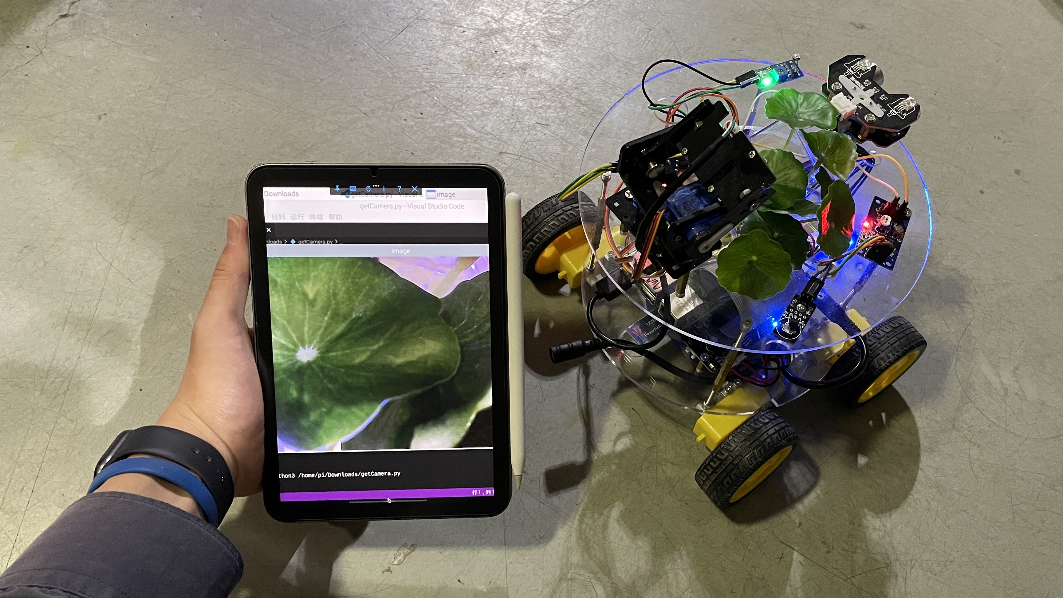The camera identifies the plant species and finds the corresponding cultivation requirements in the database. It will record the growing status, and adjusts the cultivation plan and environmental conditions.