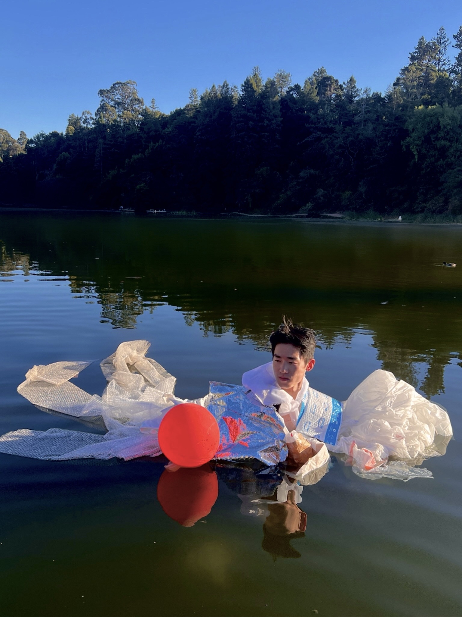 In Berkeley, where poor water management runs amuck, this video art piece specifically criticizes the crumbling infrastructures beneath the earth and the pollutants hidden in our environment that have come about due to climate change. Through the actual discarded and found debris of Berkeley, Odine learns about the human condition. Trashed mail packages, wrappers, fragments of a world obsessed with consumption, tell a story of sins that have seeped deep into the earth and into the water. These sins are unsustainable.