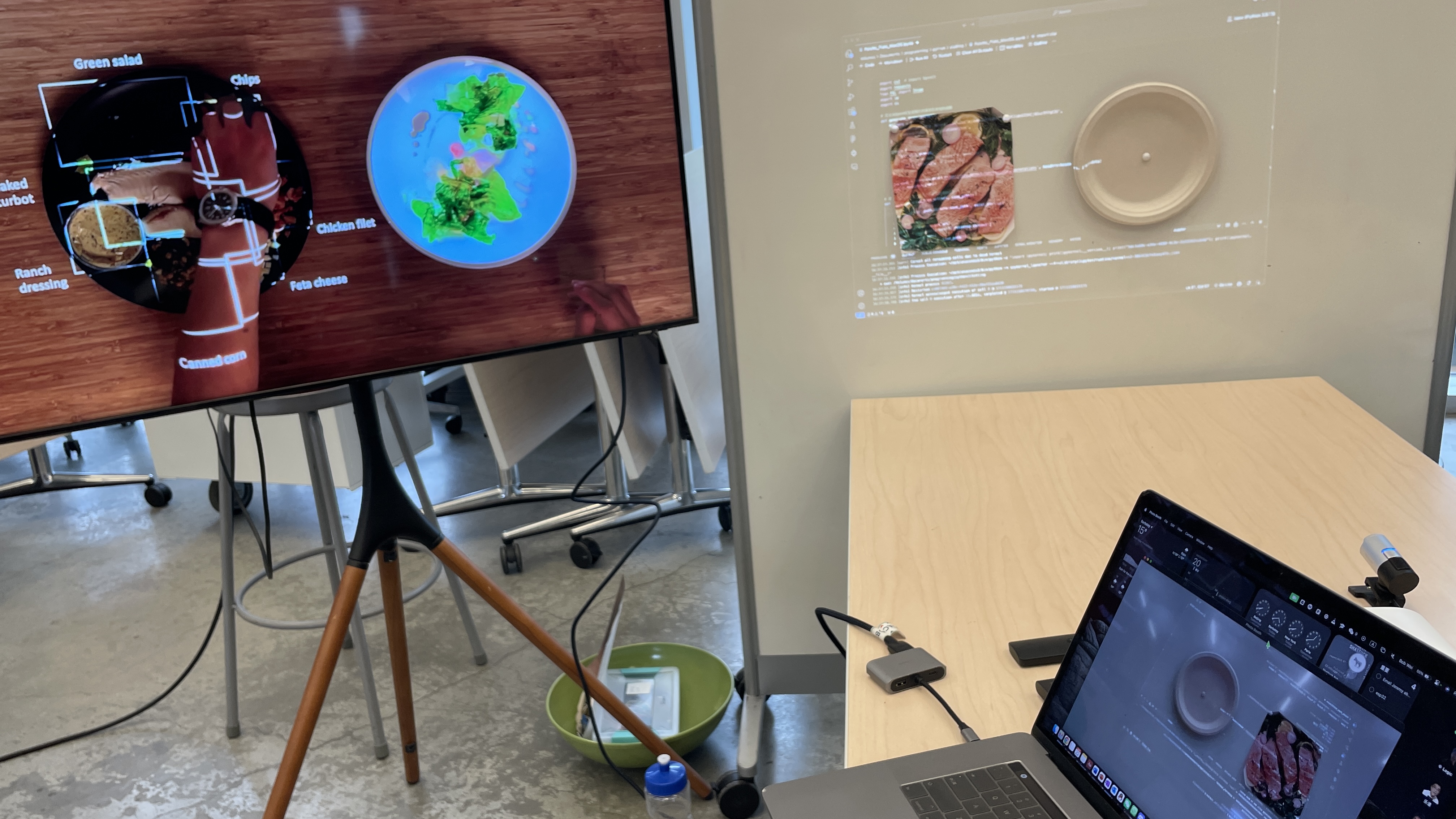 Palette Plate is an innovative kitchen gadget that revolutionizes plating by combining a Raspberry Pi, projector, camera, and AI (Open AI, Foodvisor, YOLOv8). It offers plating inspiration, measures food and plate sizes, and sets visual boundaries on kitchen surfaces to improve space use and efficiency. This AI-powered tool ensures precise plating and supports sustainability by reducing the need for multiple plates, making professional plating easy and eco-friendly.