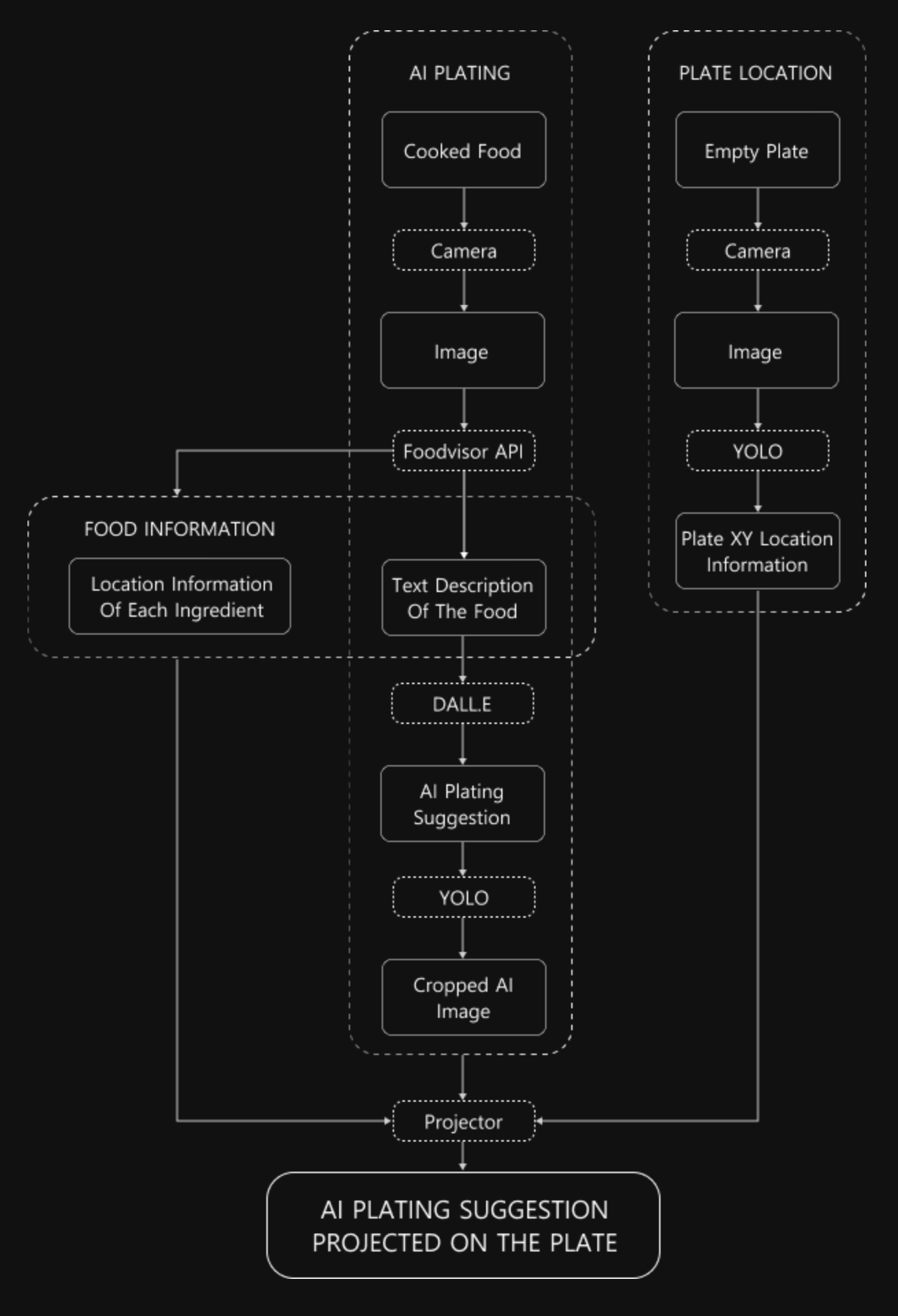 PALETTE PLATE leverages AI to offer unlimited plating inspirationas, encouraging chefs to experiment with creative presentations effortlessly.