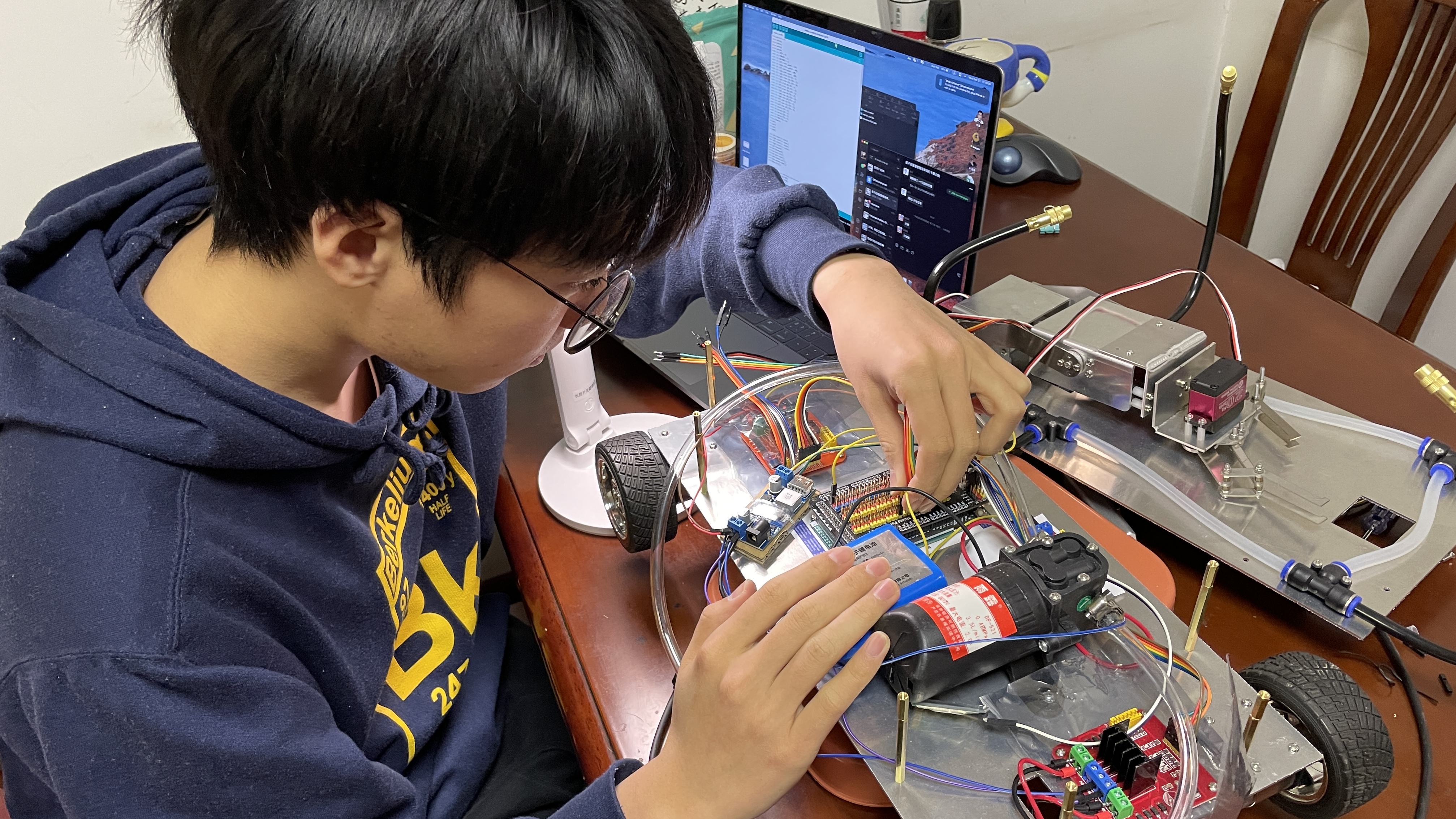 By halfway through the semester, Tsinghua University's teaching schedule was adjusted. Because covid-19 was spreading widely in Beijing, we returned home and had online classes. I took the unfinished prototype home and completed the subsequent assembly.